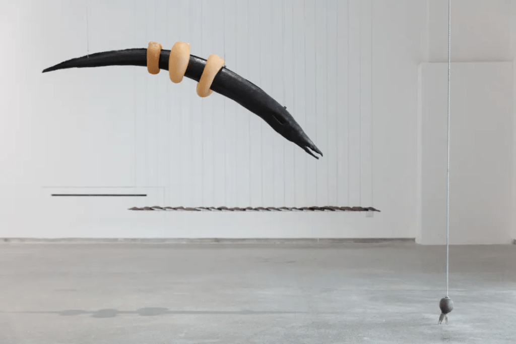 在艺术家关小的作品中,陶瓷缸、宠物链、灯具、绳索、摩托车把手等日常用品被抽离语境、去除材料本身在功能上的意义,成为视觉的元素。